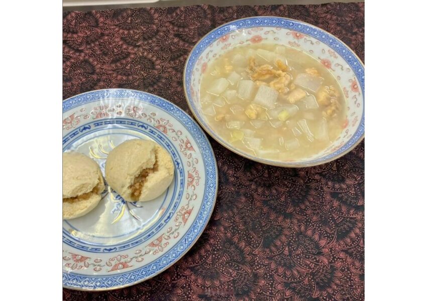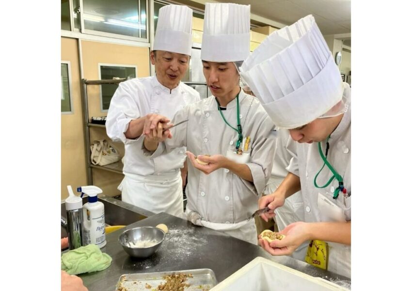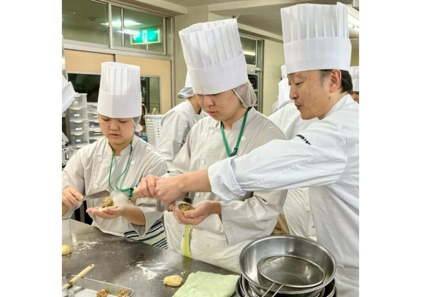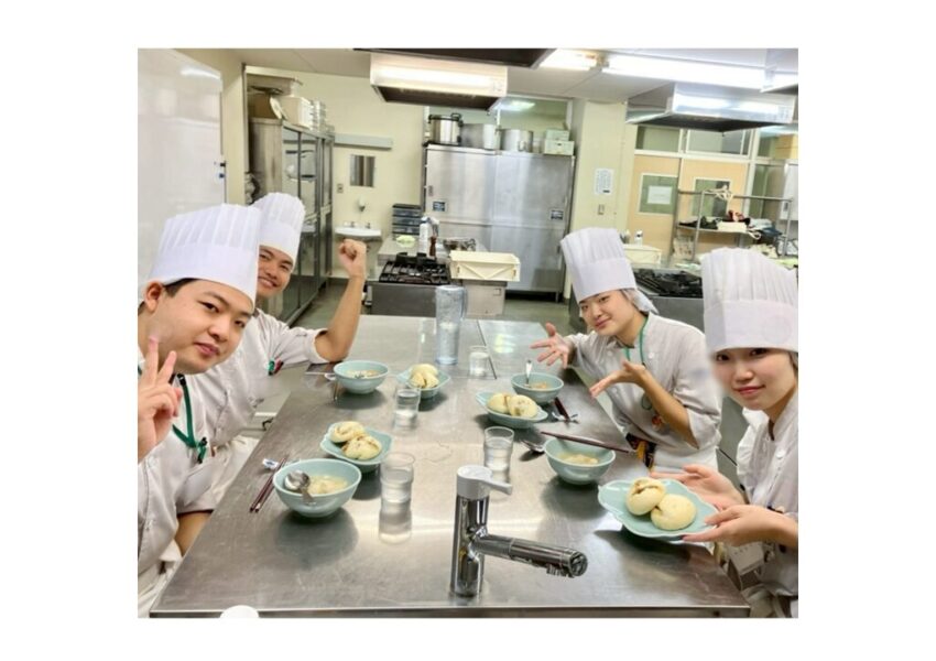 2026/01/23 授業日記調理師科 授業日記\肉まん!/生地にベーキングパウダーが入っているため、蒸し上がりにぱっくり割れるのが特徴です。 中身は滷汁で煮込んだ豚バラ肉と豚モモ肉🐷✨油たっぷりの具材を包むのはなかなか難しいですが、みんな頑張りました💪大根と鶏のスープとともに、いただきます😋