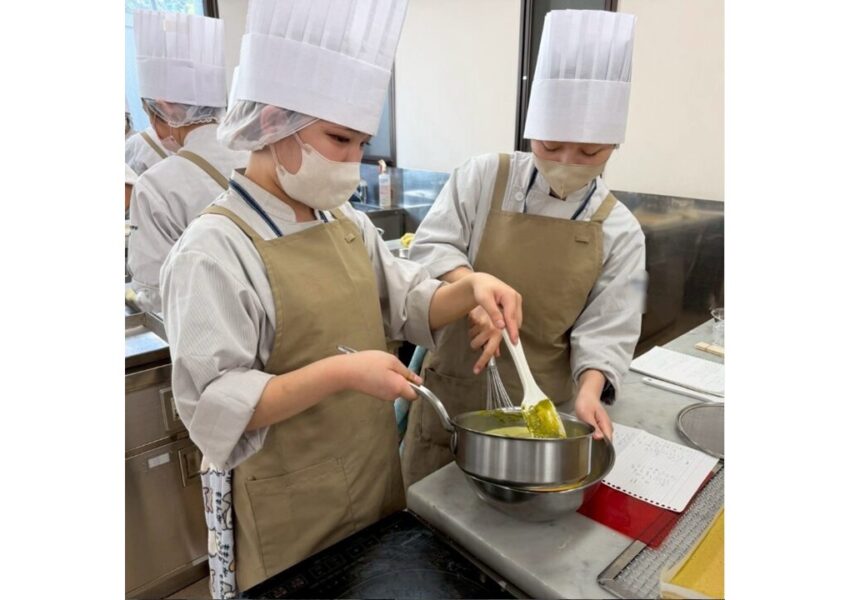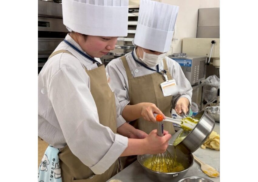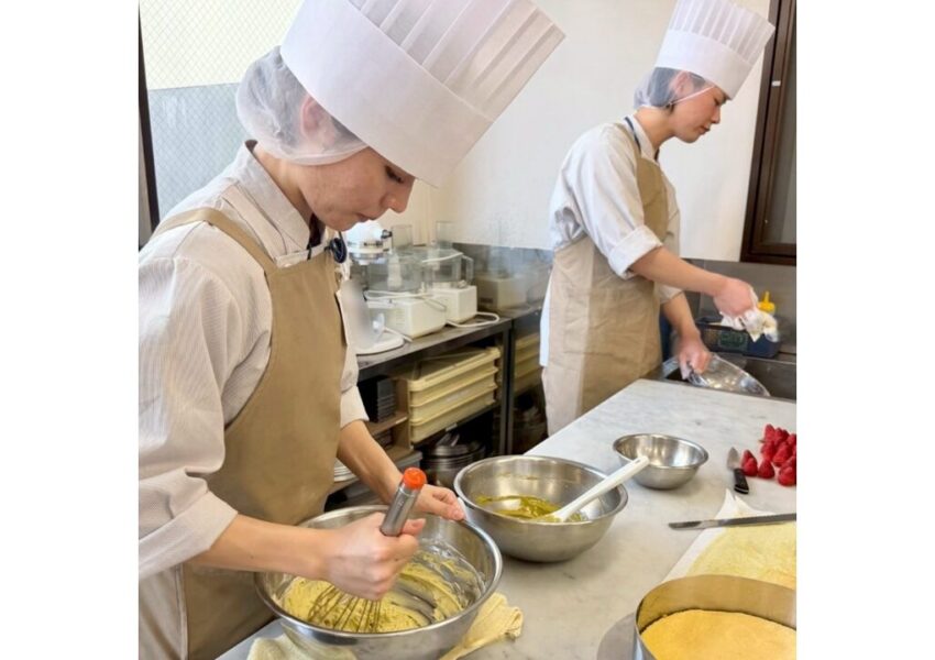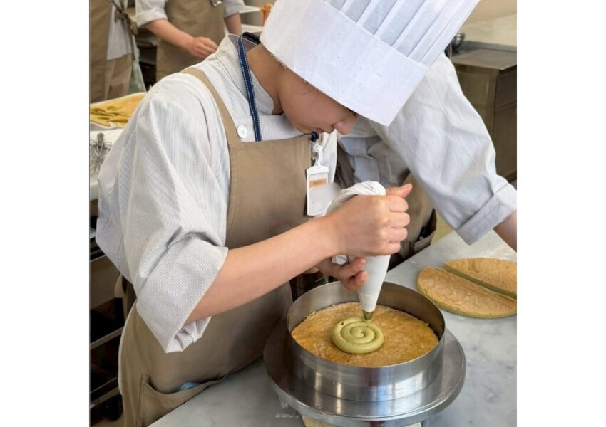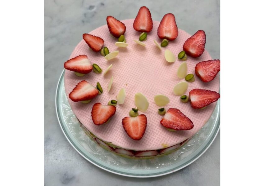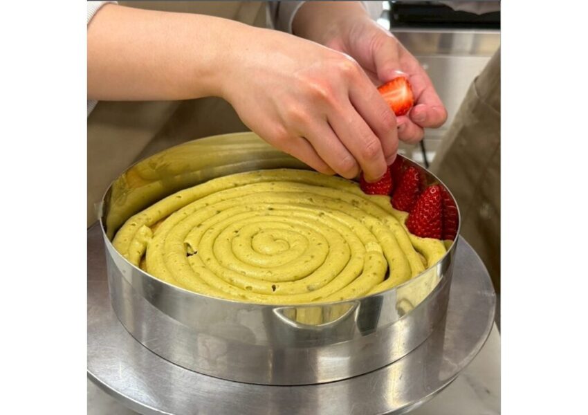 2026/04/22 授業日記製菓衛生師科 授業日記春ケーキ『フレジエ』天野先生による洋菓子実習👩🏻🍳✨ ムースクリームを使用し、表面をマジパンで覆ったフランスのケーキ。 たっぷりのイチゴとピスタチオペーストの色合いが鮮やかで、表面も断面もかわいいスイーツです