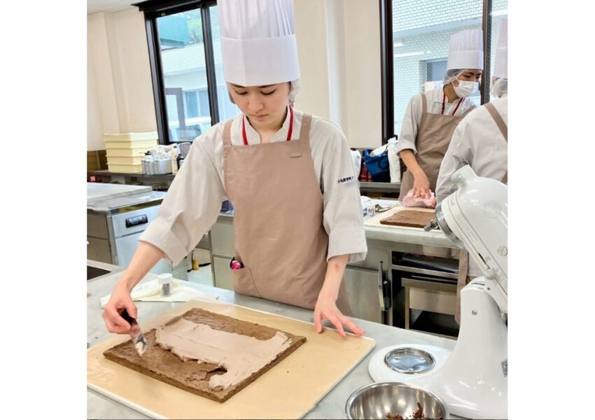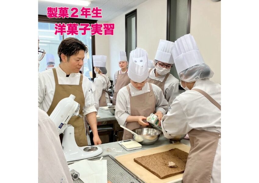 2025/09/26 授業日記製菓衛生師科 授業日記製菓2年生 洋菓子実習『ベルエキップ』オーナーパティシエの和田さんによる製菓実習🍰💕 2種類のチョコレートケーキ、ガトーブランとルローショコラを作りました🧑🏻🍳🍫✨