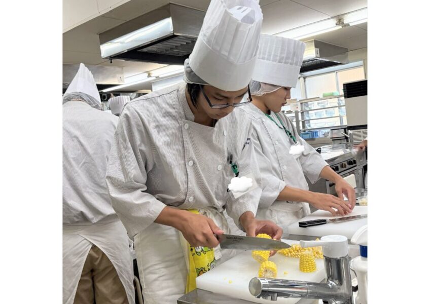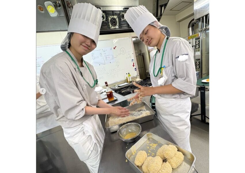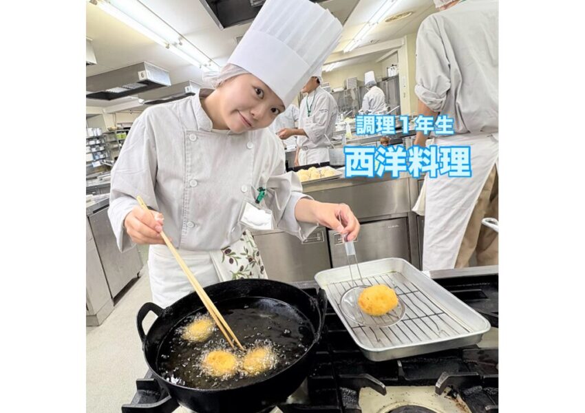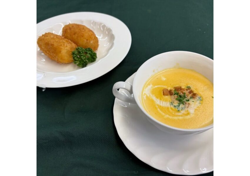 2025/10/14 授業日記調理師科 授業日記調理1年生 西洋料理とうもろこしの甘さが際立つポタージュと、ホワイトソースたっぷりサクサクトロトロなカニクリームコロッケ🍴 みんな綺麗に仕上げることができました👍✨
