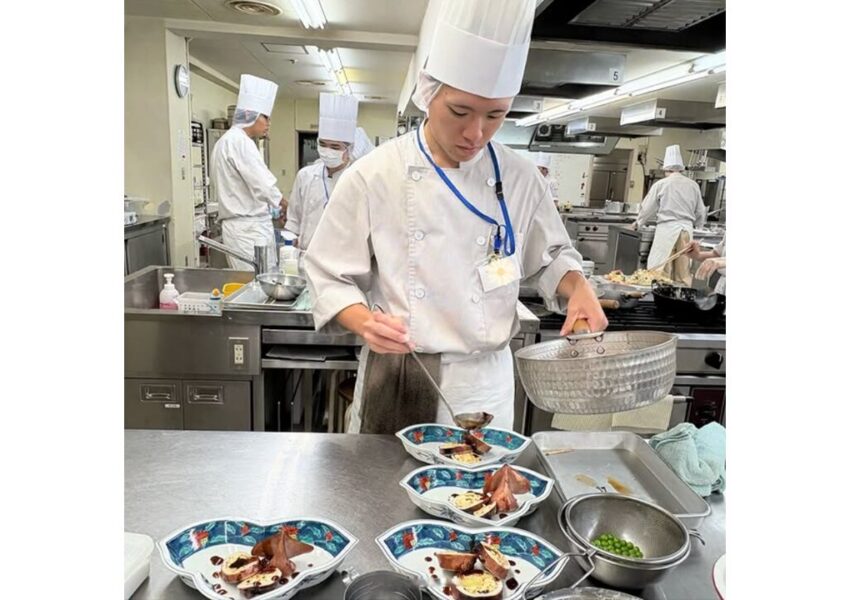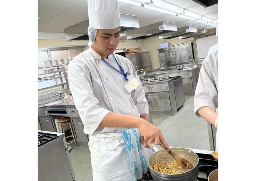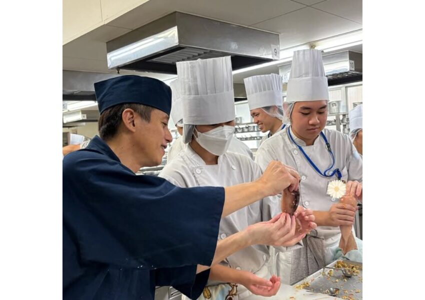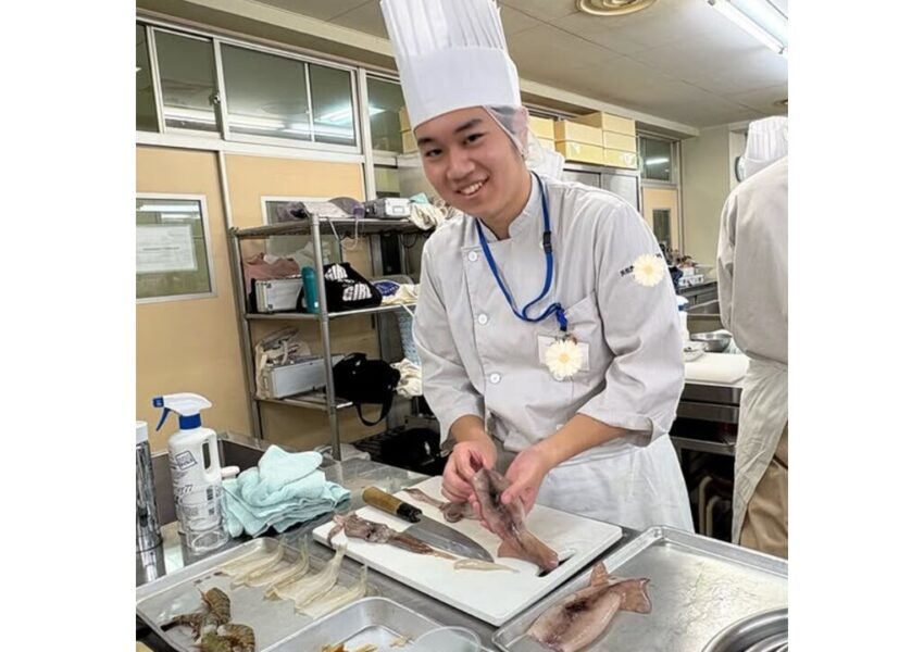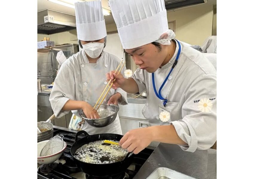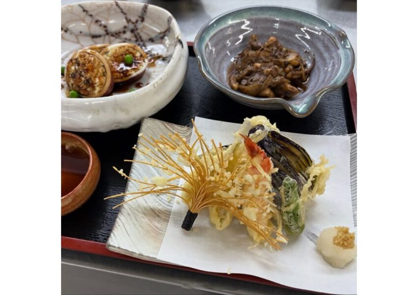 2025/10/20 授業日記調理師科 授業日記調理2年生 日本料理仲村先生の日本料理実習🥢 いかのけんちん煮、季節野菜の天ぷら🧑🏻🍳✨けんちん煮は、豆腐や卵を炒めた『けんちん地』をスルメイカに詰めて煮上げて作ります🦑