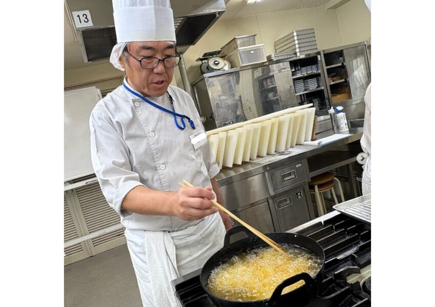 2025/11/06 授業日記調理師科 授業日記調理2年生 日本料理仲村先生の日本料理実習! 旬の秋刀魚を使ったけんちん焼きと、肌寒くなったこの季節に嬉しい揚げ出し豆腐🥢 秋冬に美味しい2品を作りました👩🏻🍳✨