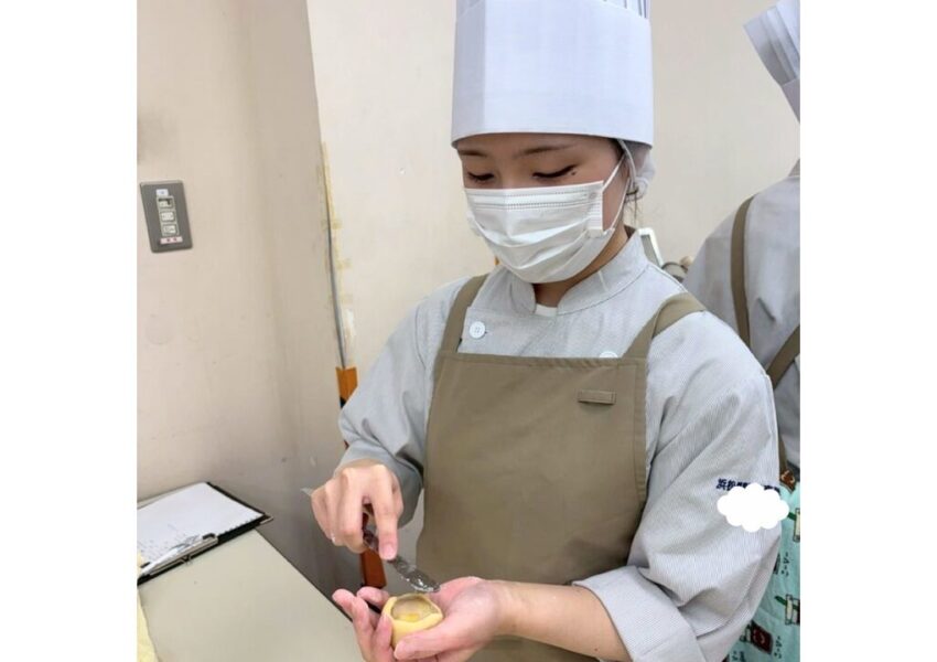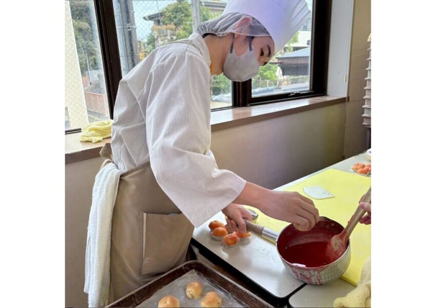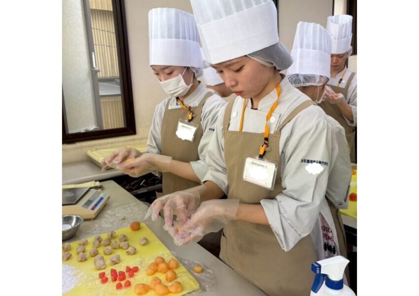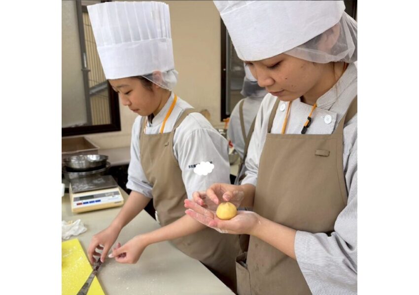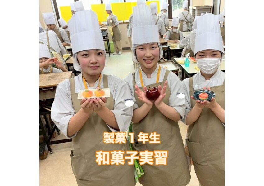2025/11/14 授業日記製菓衛生師科 授業日記製菓1年生 和菓子実習干し柿を使った柿あんをういろう生地で包んだ『市田柿』 りんごあんを包んで焼き上げた『りんごっこ』 美味しい秋の和菓子ができました🥰🍁