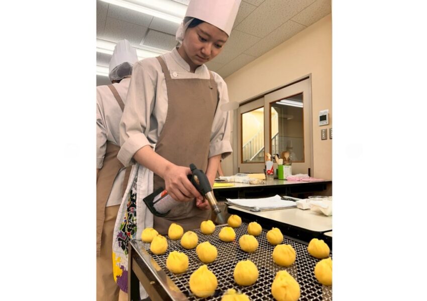 2025/12/12 授業日記製菓衛生師科 授業日記製菓2年生 和菓子実習齋藤先生の和菓子実習🍡 芋きんとんと山もみじの2品を作りました👩🏻🍳🍁 芋きんとんには、製菓2年生が作ったサツマイモ、紅はるかを使用しています🍠✨